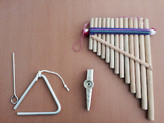 This week we started our music unit. We reviewed the different types of musical instruments. Some friends brought three Pan flutes, a triangle and a kazoo to show to the class. We also watched the story of Peter and the Wolf. The story's characters are represented by musical instruments. Here are some photos and a video: